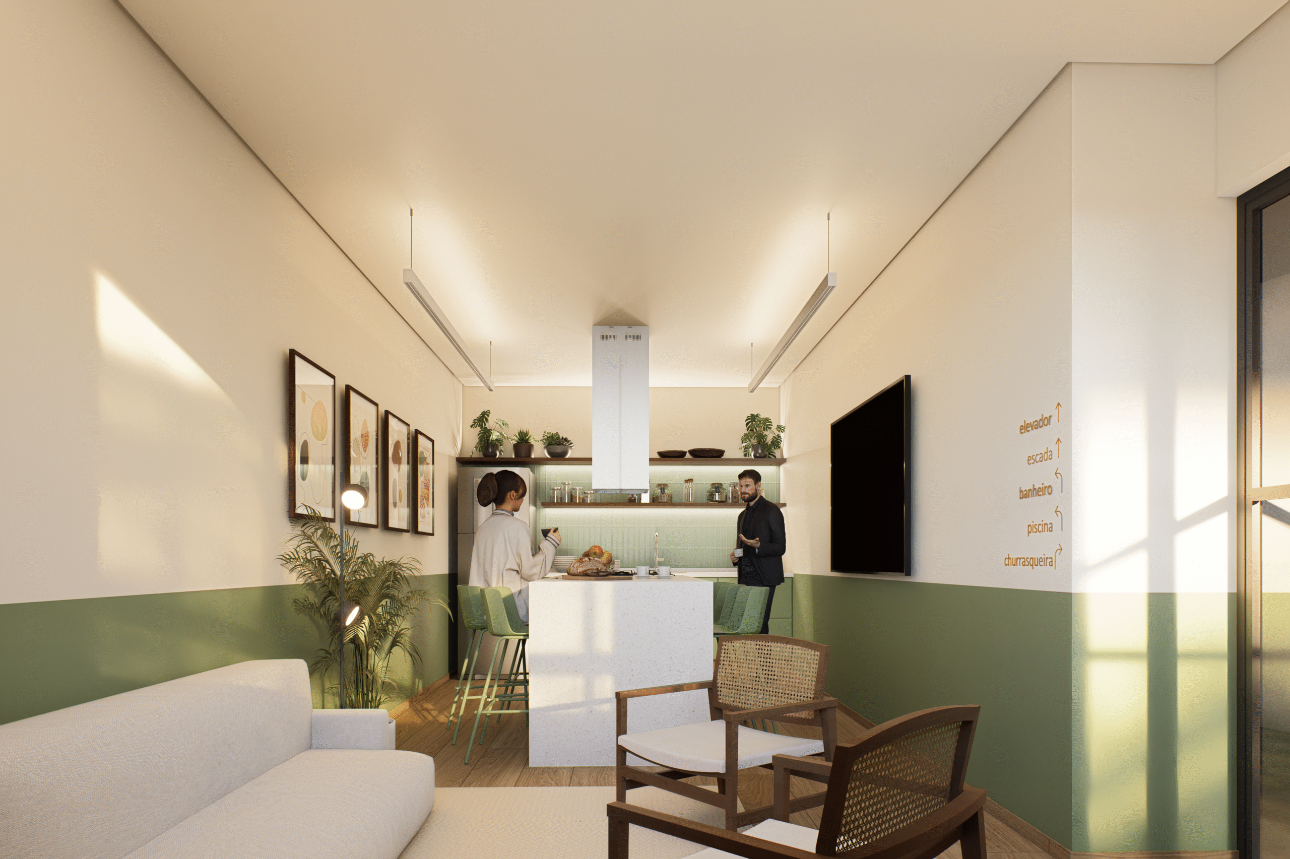 Lazer completo com: Piscina, Coworking, Academia, Lavanderia, Churrasqueira e Salão de festas.